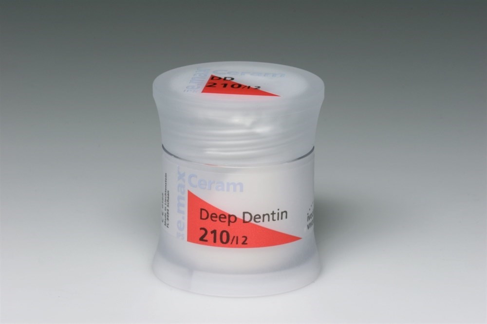 IPS e.max Ceram Deep Dentin 20 г 320 дип-дентины IPS e.max Ceram Deep Dentin с живой флюоресцентностью, повышенной опаковостью и насыщенностью цвета позволяют создать основной цвет зуба даже при работе очень тонкими слоями, а реставрации благодаря естественности цвета имеют эстетичный внешний вид. Они также служат для усиления насыщенности цвета, а также для создания гармоничного цветового перехода от промежуточной части мостовидногопротеза к десневой части, от десны к шейке зуба.