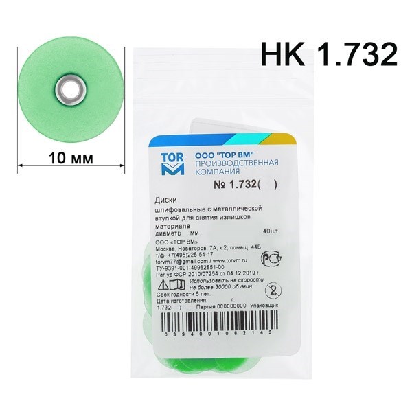 Диски 1.732 d=10 мм шлифовальные с металлической втулкой для предварительного шлифования (40 шт), зеленые (ТОР ВМ)