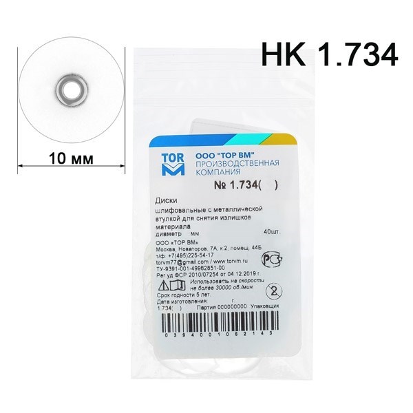 Диски 1.734, d=10 мм шлифовальные с металлической втулкой для полирования 40 шт, белые (ТОР ВМ)