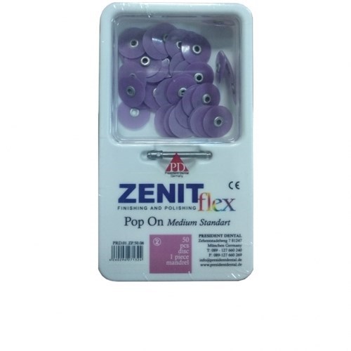 Описание: Диски Zenit flex Pop On средние D14мм фиолетовые (50шт/1 дискодер)Flex Snap Оn диски идеально подходят для высококачественной полировки контурирования, финирования до зеркального блеска композитов, стекло-иономеров, амальгам, полудрагоценных и драгоценных металлов. Конструкция оправки предотвращает скольжение. Благодаря покрытой оправке предотвращается нежелательная окраска. Одна сторона дисков покрыта оксидом алюминия. Простота использования благодаря цветовому кодированию.
