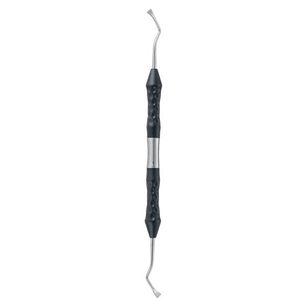 Мини-долото ERGOPERIO по OCHSENBEIN №4, DB034R, B.Braun (Aesculap, Германия) с двухсторонней, изогнутой рабочей частью, выполненной из нержавеющей стали. Рукоятка черного цвета, имеет облегченный вес, эргономичную форму и удобный захват, все это вместе позволяет в процессе работы руке специалиста не уставать.
