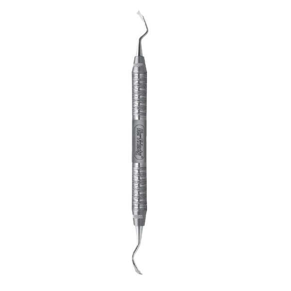Двустороннее долото обратного действия от бренда Hu-Friedy (США) подходит для безболезненного и безопасного удаления кости, прилегающей к зубу. Продуманная изогнутая форма позволяет врачу прилагать минимум усилий для выдалбливания нужного отверстия. Гладкую ручку KOTSCHY удобно держать в руке. Мелкодисперсный абразив и продольные насечки на ней не дает инструменту скользить.