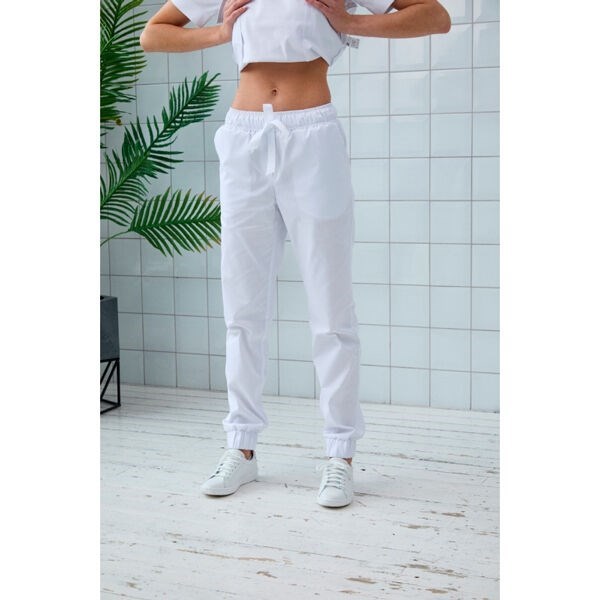 Женские медицинские брюки зауженного кроя со средней посадкой отличаются удобной и стильным кроем. Имеют манжеты на резинке и карманы в боковых швах. За счет удобного пояса на резинке идеально садятся на любой фигуре.