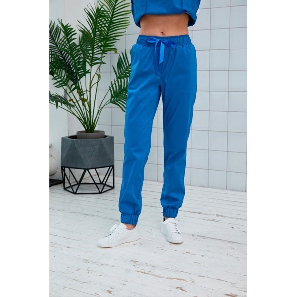 Женские медицинские брюки зауженного кроя со средней посадкой отличаются удобной и стильным кроем. Имеют манжеты на резинке и карманы в боковых швах. За счет удобного пояса на резинке идеально садятся на любой фигуре.