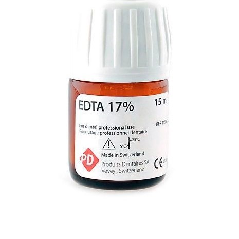 - EDTA 17% представляет собой раствор / гель для химического расширения корневых каналов в процессе механической обработки (гель) и ирригации (раствор).