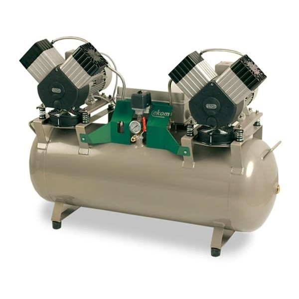 EKOM DK50 2X2V/110/M - безмасляный компрессор для 4-х стоматологических установок без кожуха, с осушителем, с ресивером 110 л