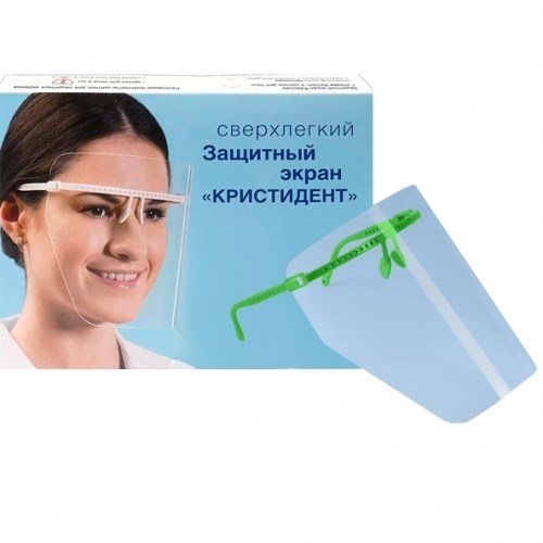 Описание: Экран защитный ЗЕЛЕНЫЙ "Кристидент" ( Классик )Экран защитный для лица многоразовый предназначен для защиты лица медицинского персонала от воздействия прямого или частично бокового попадания брызг жидкостей и пыли при использовании в стоматологии и челюстно-лицевой хирургии, а также маникюрном, педикюрном сервисе и косметологии.