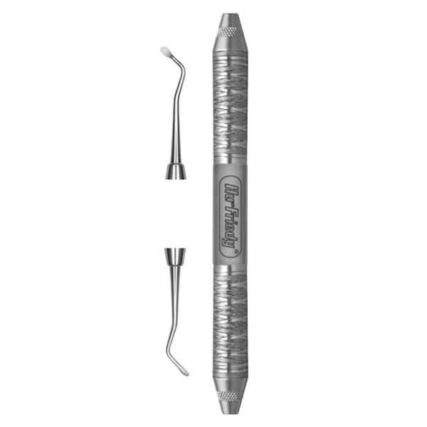 Двусторонний экскаватор с овальными ложками и утяжеленной ручкой от Hu-Friedy применяется для эффективной диагностики и подготовки к лечению кариозной полости. Овальная ложка быстро проникает в самые труднодоступные участки зубного ряда и послойно снимает размягченный дентин и другие патологические ткани.