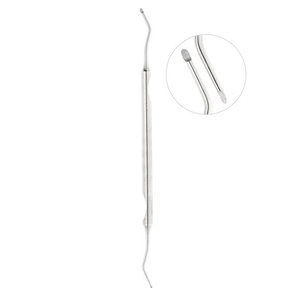 Инструмент двусторонний — каждая из симметричных рабочих частей имеет форму ложки с острыми краями. Это позволяет атравматично удалять размягченный дентин или эмаль из кариозной поверхности.