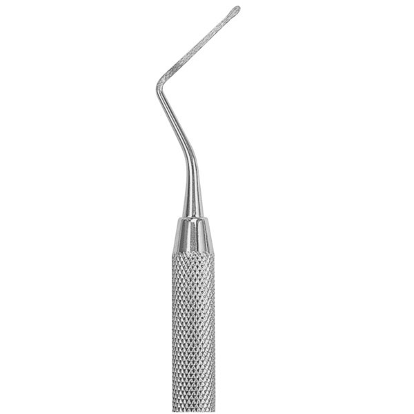 Изогнутый под углом и вокруг своей оси тонкий хвостовик длиной 4 мм проникает в самые труднодоступные области ротовой полости. Овальная плоская вогнутая рабочая часть с заточенной кромкой эффективно удаляет размягченный дентин и грануляционную ткань.