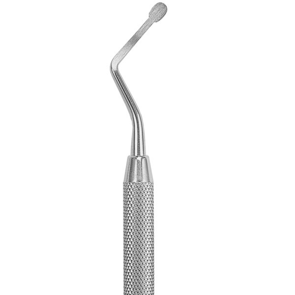 Изогнутый под тупым углом удлиненный хвостовик позволяет работать на самых труднодоступных участках ротовой полости. Форма и размер рабочей части помогают удалять размягченный дентин, грануляционную ткань из наддесневых и поддесневых участков поверхности зуба.