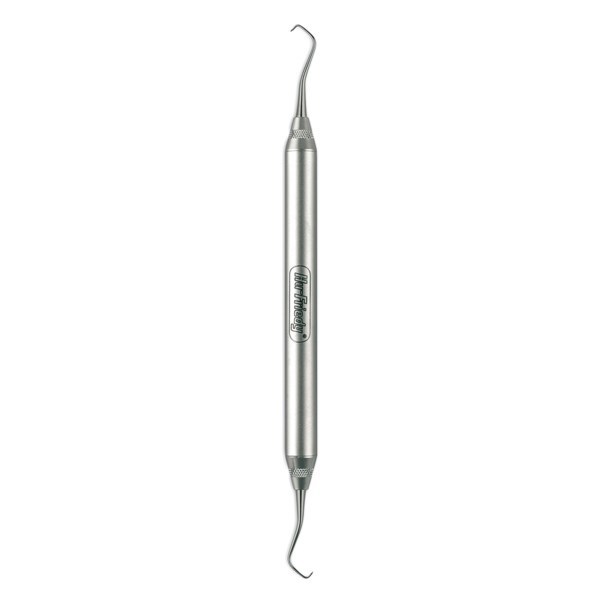 Двусторонний угловой экскаватор специальной серии Kalla от американской компании Hu-Friedy разработан для обработки кариозных полостей на мезиальных поверхностях зубного ряда. Тонкий изогнутый стержень легко проникает в самые труднодоступные участки ротовой полости. Размер, форма и расположение рабочей части позволяют быстро адаптироваться к участку кариеса и удалить размягченный дентин или грануляционную ткань.