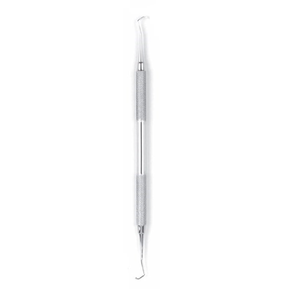 Каждая из симметричных рабочих частей двустороннего инструмента имеет форму круглой ложки с острыми краями, которые позволяют атравматично удалять размягченные ткани зуба из кариозной поверхности.