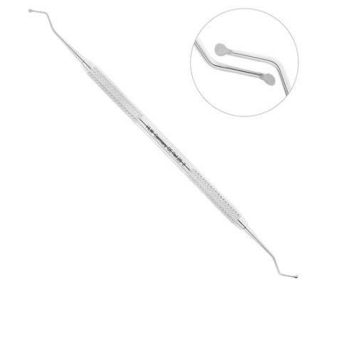Каждая из симметричных рабочих частей двустороннего инструмента имеет форму круглой ложки с острыми краями, которые позволяют атравматично удалять размягченный дентин или эмаль из кариозной поверхности.