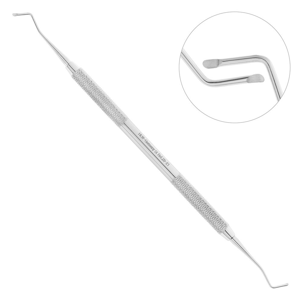 Компанией HLW Dental Instruments изготовлен стоматологический экскаватор с шириной рабочей части 1 мм, предназначенный для удаления размягченных тканей зуба, а также для снятия отложений на зубах и обработки зубодесневых карманов.