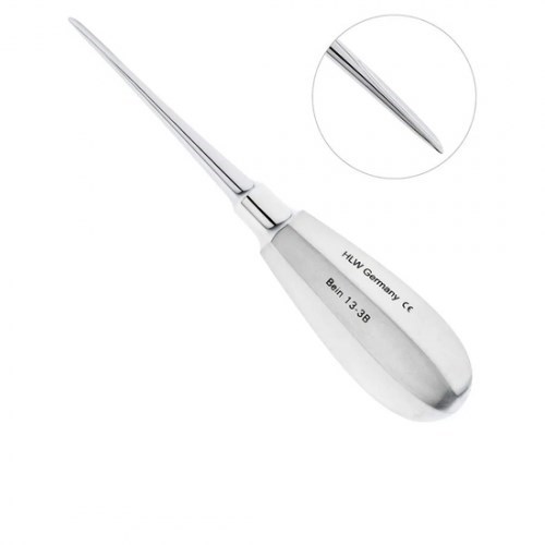 Описание: Элеватор 2,0 мм Bein прямойДля удаления корней и зубов на верхней и, в ряде случаев, на нижней челюсти используется элеватор конструкции Бейна производства немецкой компании HLW Dental Instruments.Рабочая часть инструмента имеет заостренный край и плоскую треугольную форму без желоба. Такая конструкция позволяет ввести элеватор в лунку зуба и без затруднений провести операцию по удалению корня или зуба в полости рта. Ширина щечки инструмента 2 мм.У элеватора ручка, соединительный стержень и рабочая часть находятся на одной прямой. Инструмент надежно фиксируется и не скользит в руке, благодаря восьмигранной укороченной ручке элеватора.
