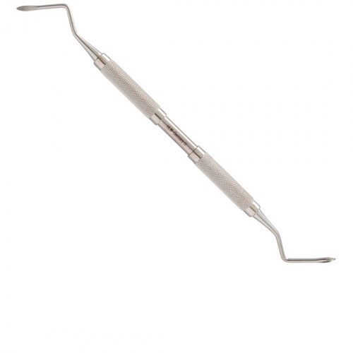 Описание: Элеватор 2,5 мм HeidbrinkФрагменты корней зубов целесообразно удалять элеватором конструкции Хейдбринка. Производителем инструмента является немецкая компания HLW Dental Instruments.Ручка элеватора двусторонняя. С обоих концов расположены зеркально отраженные рабочие части шириной по 2,5 мм каждая. Щечки инструмента тонкие, стреловидные, остроконечные, за счет чего можно без затруднений проводить операции в глубоких и труднодоступных участках полости рта. Поскольку методика удалений сепарированных фрагментов корней предусматривает совершение движений малой амплитуды, для повышения мануального контроля рукоятка инструмента выполняется в виде цилиндрического стержня, который фиксируется в руке как «писчее перо». На внешней поверхности ручки инструмента нанесен ретенционный узор, который предотвращает скольжение фаланг пальцев в перчатке.