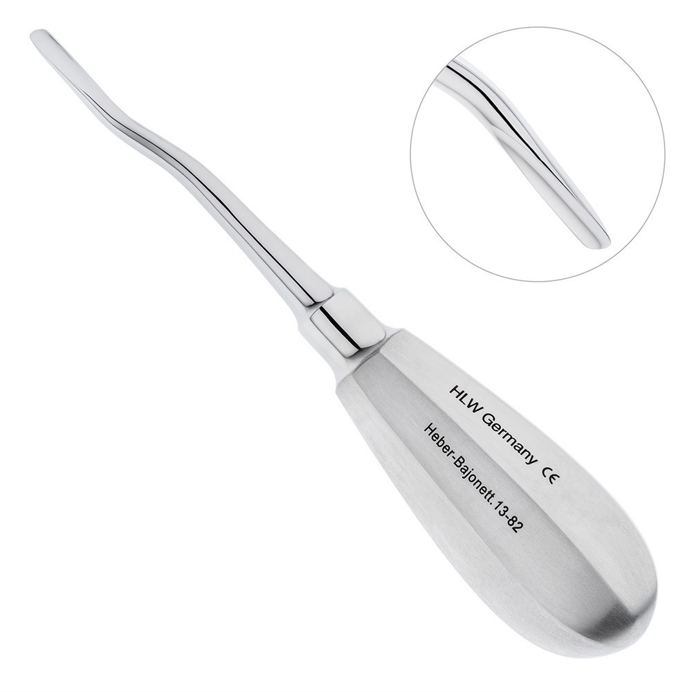 Для удаления третьих моляров верхнего и нижнего зубного ряда разработан байонетный элеватор производства немецкой компании HLW Dental Instruments.