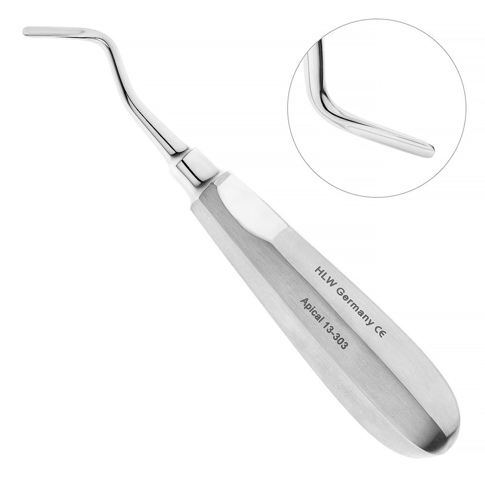 Для удаления корней и зубов на нижней челюсти применяется апикальный элеватор производства компании HLW Dental Instruments.