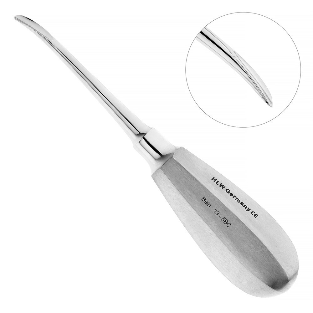 Компанией HLW Dental Instruments изготовлен элеватор конструкции Бейна, который используется для удаления корней зубов верхней челюсти, атипично расположенных зубов верхней челюсти и, в ряде случаев, для удаления третьих моляров нижней челюсти.