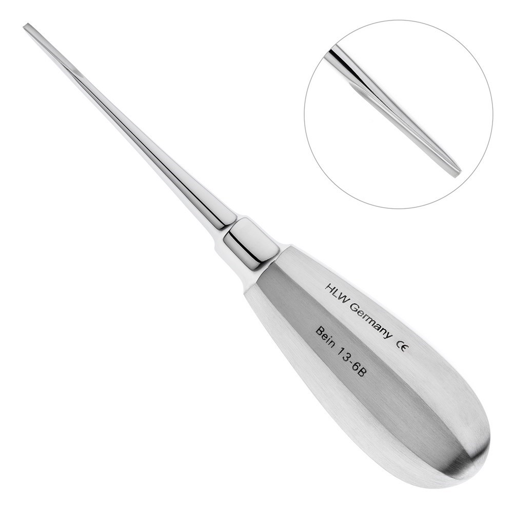 Элеватор конструкции Бейна применяется для удаления корней и зубов на верхней и нижней челюсти. Компания HLW Dental Instruments является производителем и поставщиком инструмента.