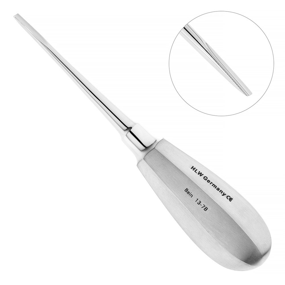 Элеватор конструкции Бейна производства немецкой компании HLW Dental Instruments используется для удаления корней и зубов на верхней и нижней челюсти.