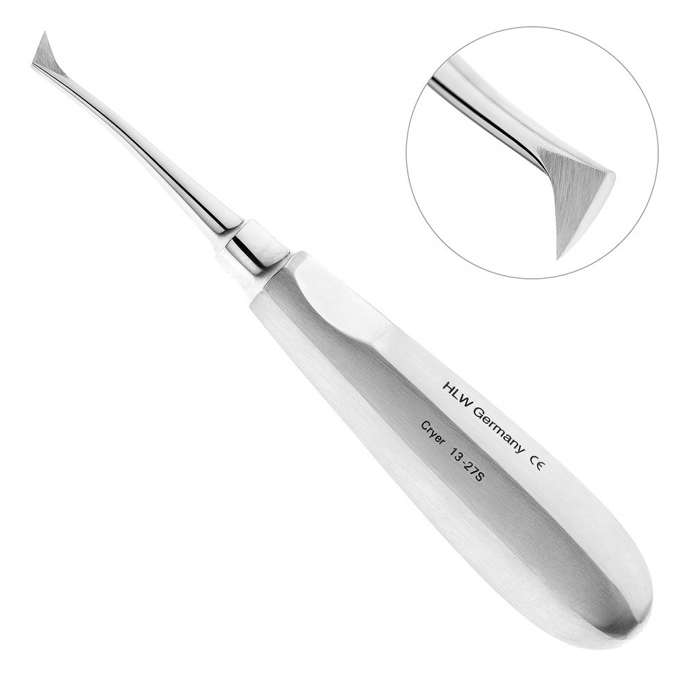 Для удаления корней и зубов на нижней челюсти используется элеватор конструкции Краера производства известной компании HLW Dental Instruments.