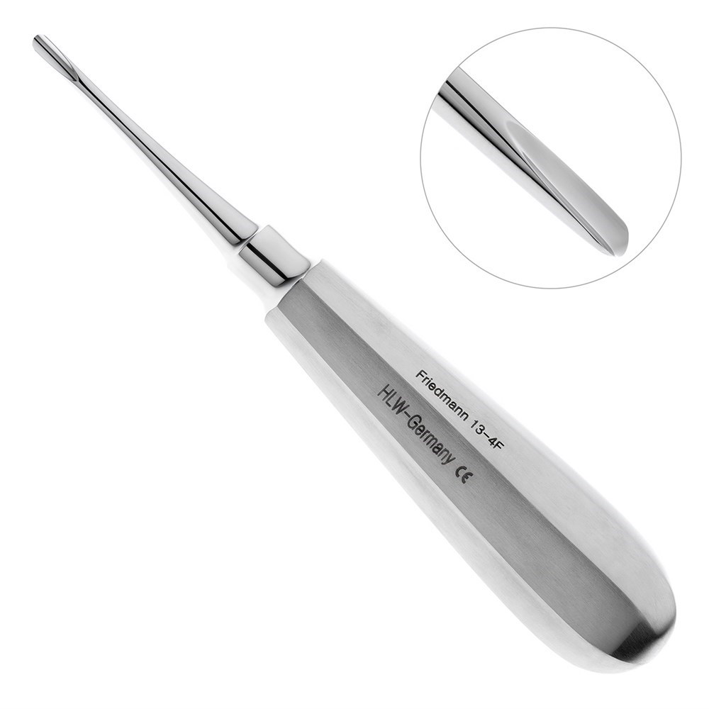 Элеватор конструкции Фридманна применяется для удаления корней, ретенированных зубов на верхней челюсти, реже на нижней челюсти. Производителем инструмента является компания HLW Dental Instruments.