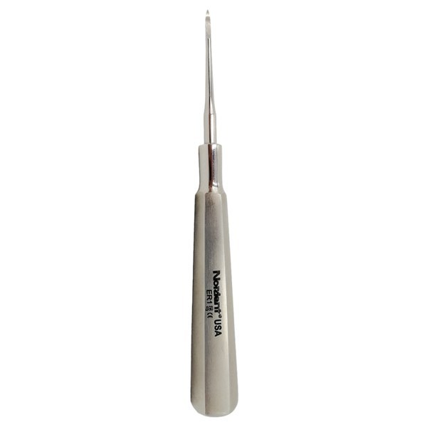 Прямой корневой элеватор Root Tip Elevator Heidbrink #1 имеет эргономичную ручку. Есть модель с зубчатой рабочей частью — арт. ER1SR (serrated). Инструмент сделан из нержавеющей стали, что позволяет дезинфицировать элеватор разными способами, в автоклаве в том числе.