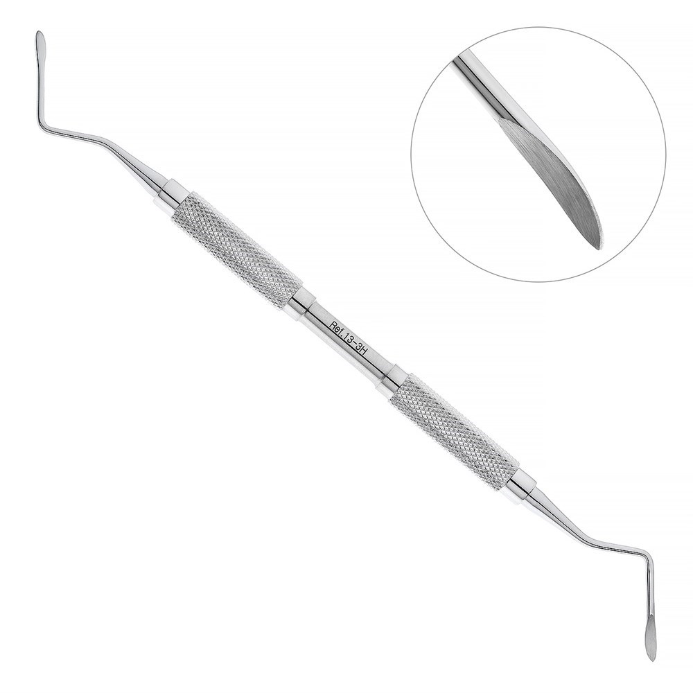 Поскольку методика удалений сепарированных фрагментов корней предусматривает совершение движений малой амплитуды, для повышения мануального контроля рукоятка инструмента выполняется в виде цилиндрического стержня, который фиксируется в руке как «писчее перо». На внешней поверхности ручки инструмента нанесен ретенционный узор, который предотвращает скольжение фаланг пальцев в перчатке.
