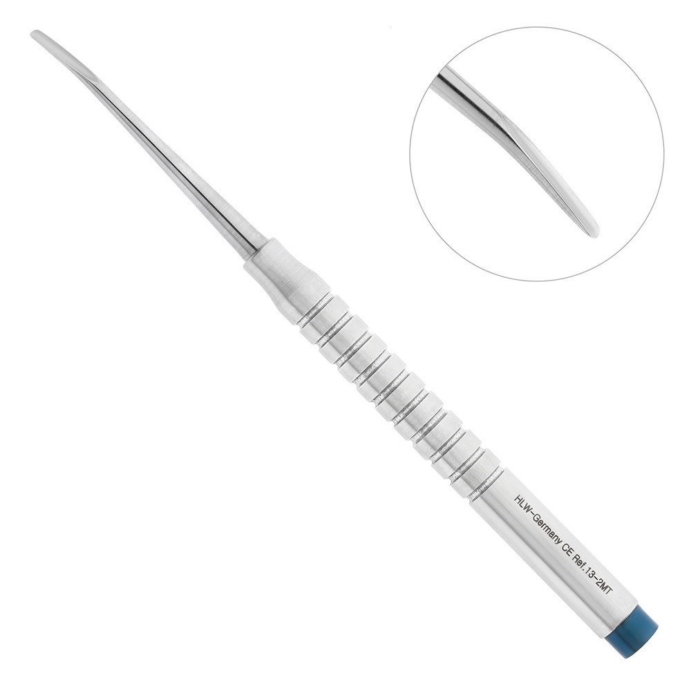 Данная модель относится к серии изогнутых мини элеваторов, предназначенных для атравматичного удаления корней и зубов на нижней челюсти. Производителем инструмента является немецкая компания HLW Dental Instruments.