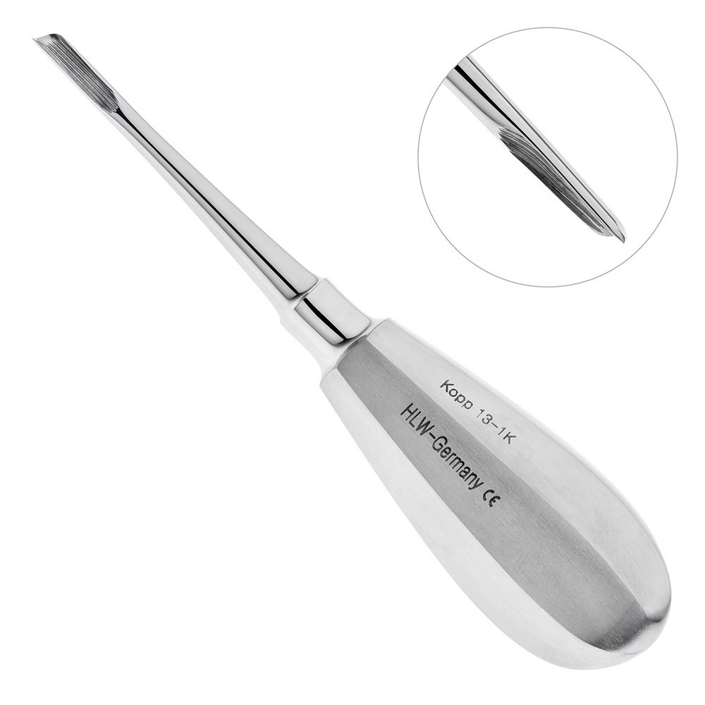 Элеватор конструкции Коппа применяется для удаления корней, ретенированных зубов на верхней челюсти и, в ряде случаев, на нижней челюсти. Производителем инструмента является компания HLW Dental Instruments.