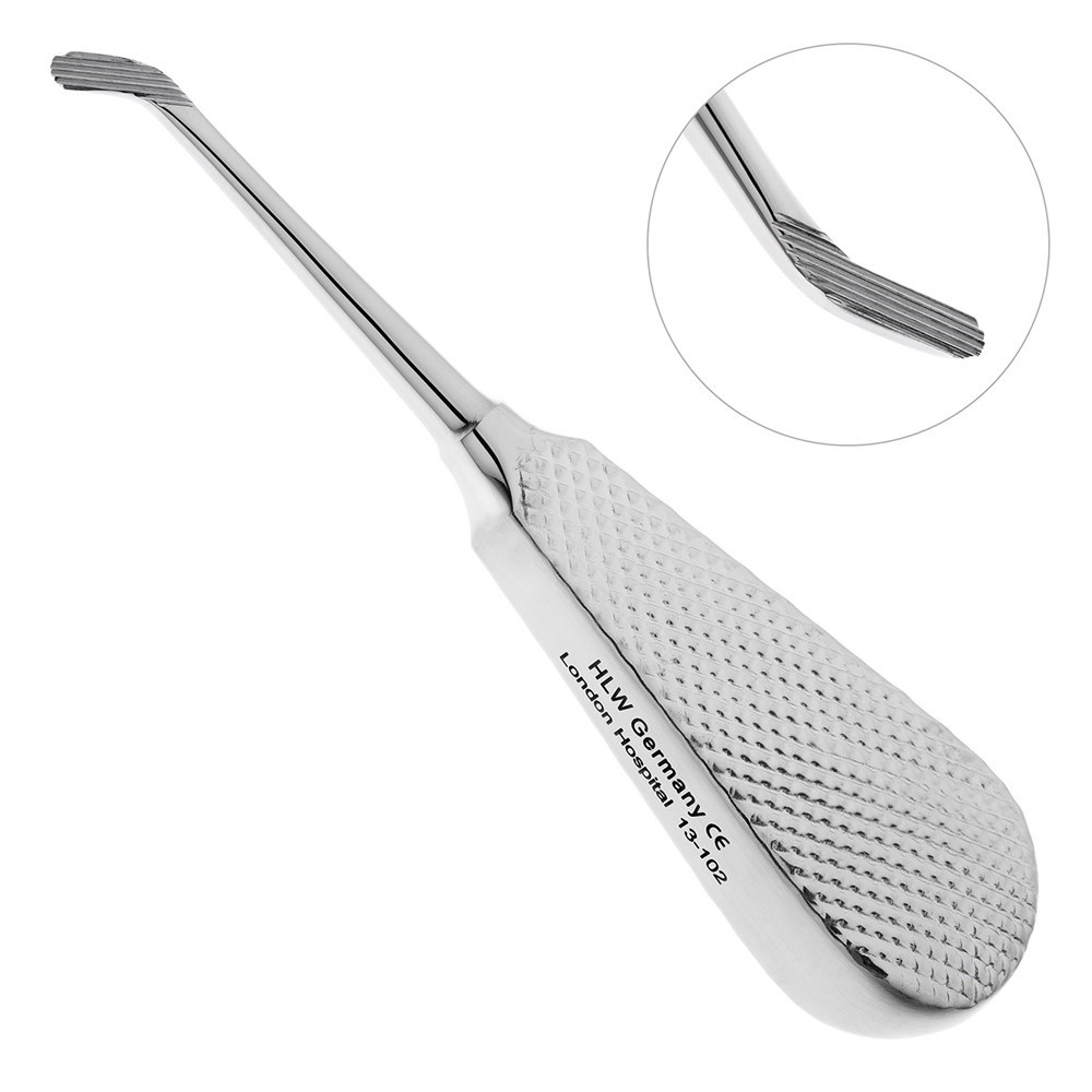 Элеватор конструкции London Hospital предназначен для удаления корней зубов на нижней челюсти. Производителем инструмента является компания HLW Dental Instruments.