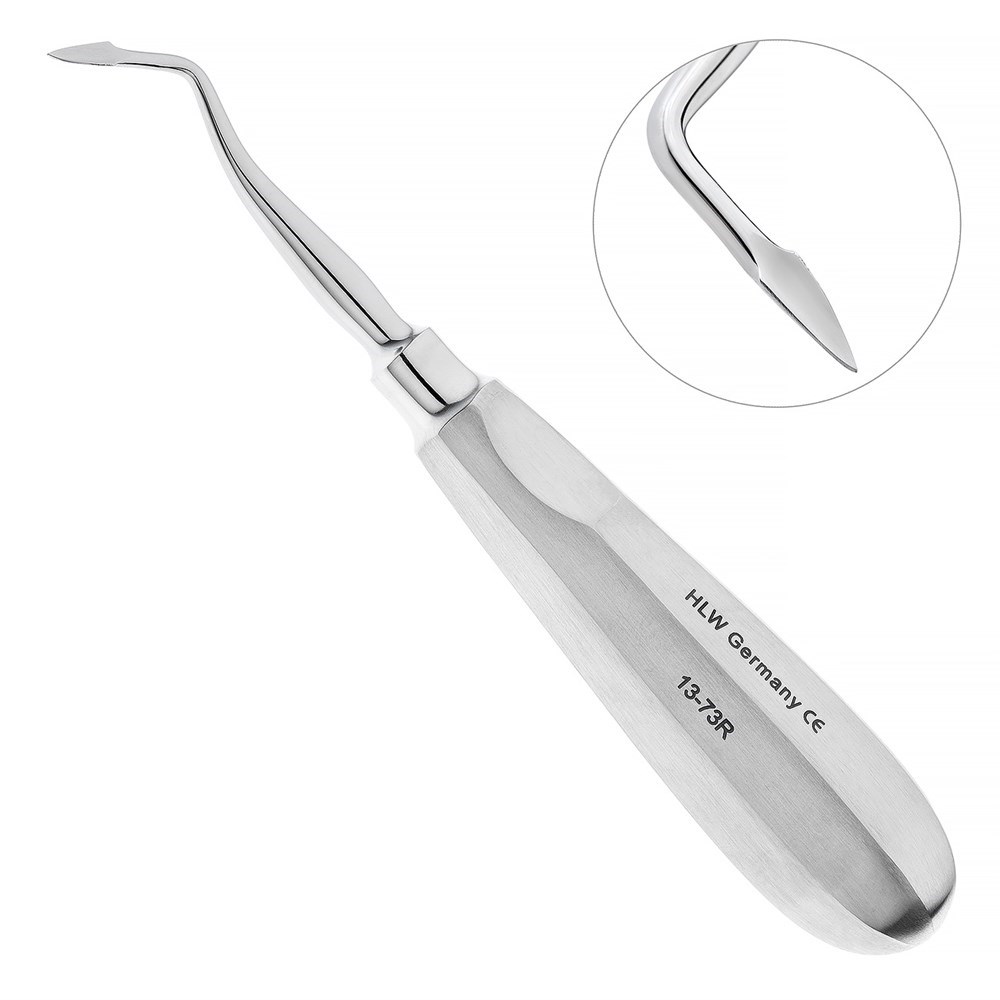 Для удаления корней и зубов на нижней челюсти применяется штыковидный элеватор производства известной компании HLW Dental Instruments.