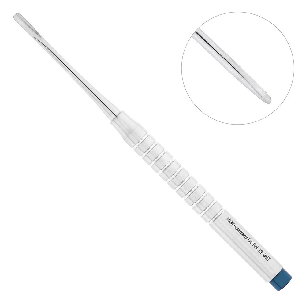 Данная модель прямого мини элеватора разработана для атравматичного удаления фронтальной группы зубов на верхней челюсти. Производителем инструмента является немецкая компания HLW Dental Instruments.