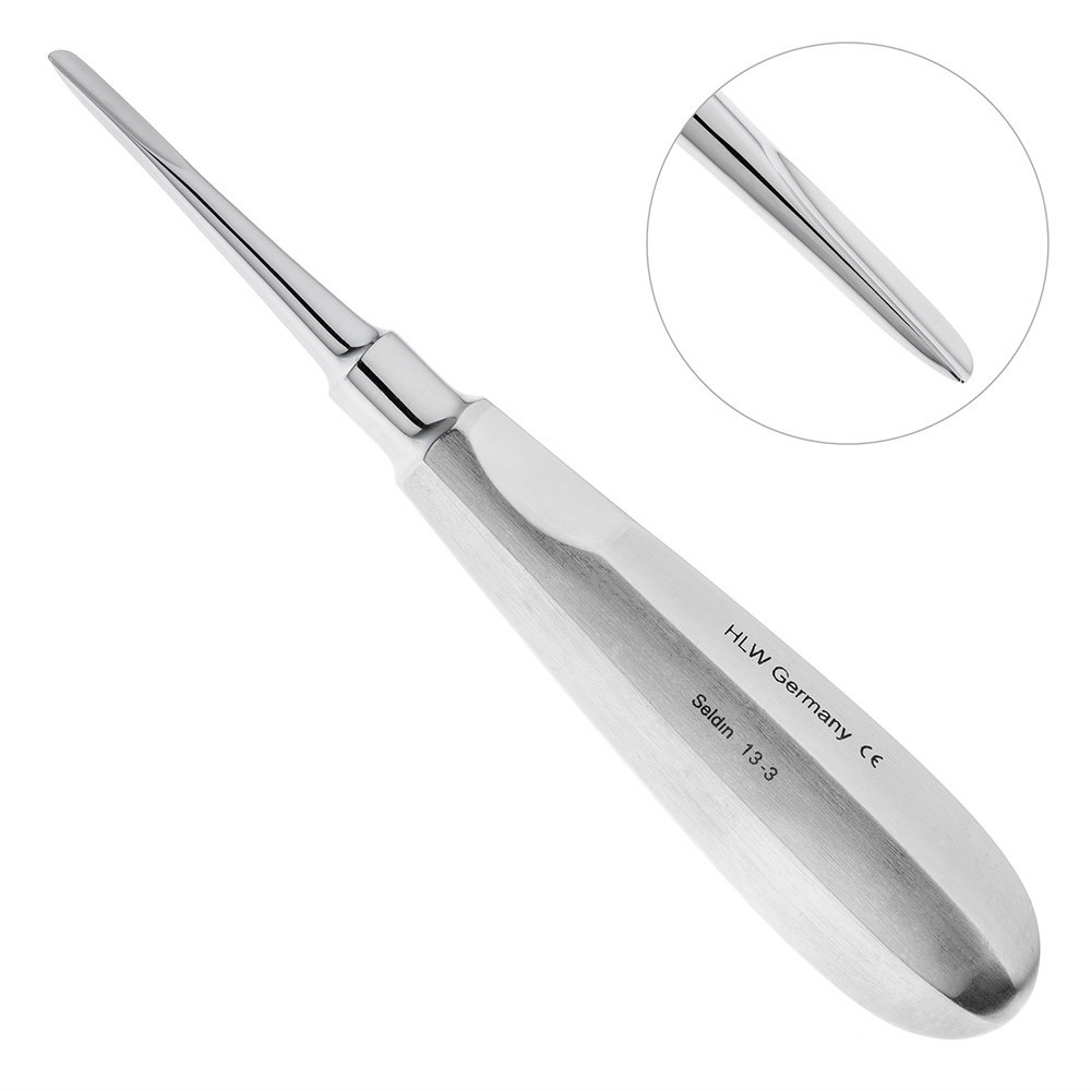 Для удаления корней зубов верхней челюсти, атипично расположенных зубов верхней челюсти и, в ряде случаев, для удаления третьих моляров нижней челюсти применяется элеватор Селдина. Производителем инструмента является компания HLW Dental Instruments.