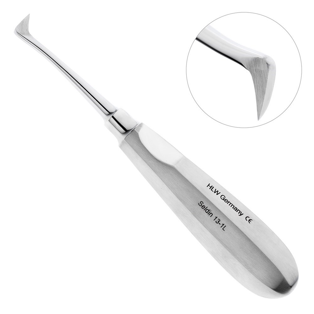 Для удаления корней зубов на нижней челюсти используется элеватор конструкции Селдина производства известной компании HLW Dental Instruments.