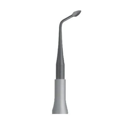 Плоская узкая рабочая часть с углублением легко проникает в пространство между альвеолой и зубом. Острое лезвие рассекает связку. Врачу остается только вытолкнуть зуб методом рычага.