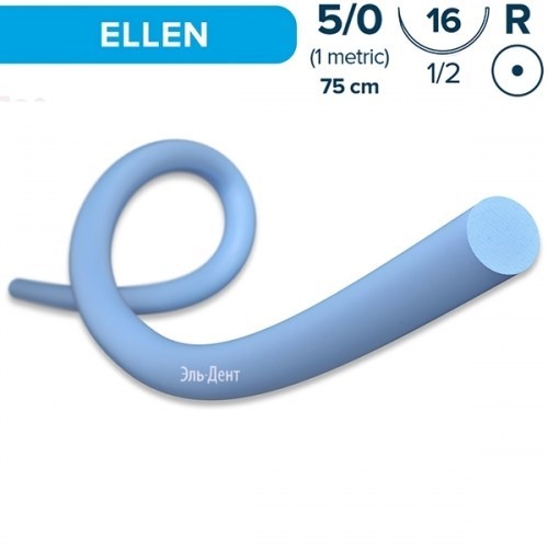Описание: ЭЛЛЕН 5-0 75 см, 16 мм, 1/2, колющая, 12 шт голубой