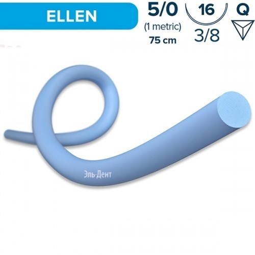 Материал хирургический шовный нерассасывающийся стерильный "ELLEN", 5-0 (1), 75 см, игла 16 мм, 3/8, обратно-режущая, голубая, ELEMAAR.