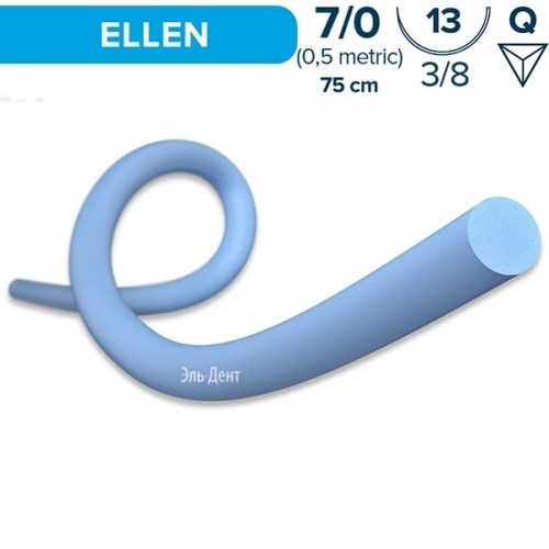 Материал хирургический шовный нерассасывающийся стерильный "ELLEN", 7-0 (0.5), 75 см, игла 13 мм, 3/8, обратно-режущая, голубая, ELEMAAR.