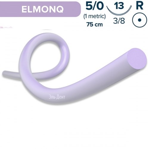 Материал хирургический шовный рассасывающийся стерильный "ELMONQ", 5-0 (1), 75 см, игла 13 мм, 3/8, колющая, лиловая, ELEMAAR.