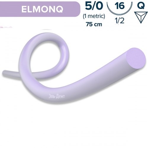 Материал хирургический шовный рассасывающийся стерильный "ELMONQ", 5-0 (1), 75 см, игла 16 мм, 1/2, обратно-режущая, лиловая, ELEMAAR.