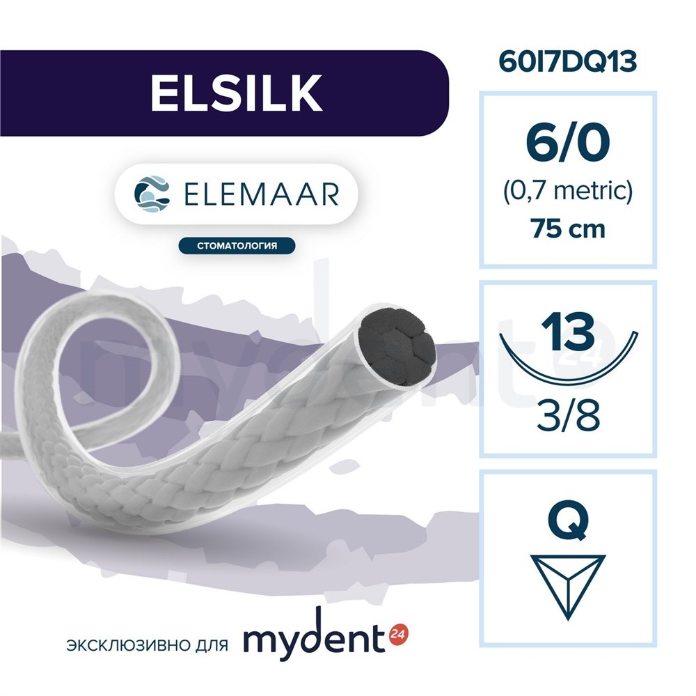 Шовный материал ELSILK — это полифиламентная натуральная нить, которая широко используется в биомедицинской промышленности уже много лет. Шелковые нити обработаны силико- ном или воском для сглаживания поверхности, что облегчает их прохождение через ткани.