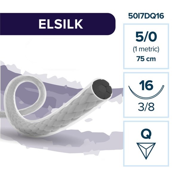 ELSILK S — нерассасывающаяся нить, 3/8, обратно-режущая нить 16 мм, толщина 5/0 (1), 75 см, 12 шт