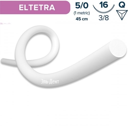 Материалы хирургические шовные нерассасывающиеся стерильные "ELTETRA", 5-0 (1), 45 см, игла 16 мм, 3/8, обратно-режущая, белая, ELEMAAR.