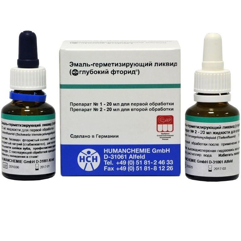 Двухкомпонентный состав из эмаль-герметизирующей жидкости и гидроокиси-меди кальция (наносятся по очереди, не смешиваются) позволяет добиться глубокого фторирования.