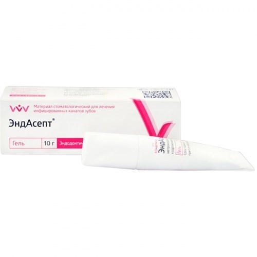 Описание: ЭндАсепт-гель для лечения инфицированных каналов зубов, 10г., ВладМиВаПредназначен для временного заполнения инфицированных каналов при лечении гангренозного пульпита и хронических форм периодонтитов, а также при остром периодонтите с некротизированной пульпой.