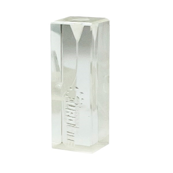 Тренировочный эндоблок одноканальный — это прозрачный прямоугольный блок с имитацией корневого канала.