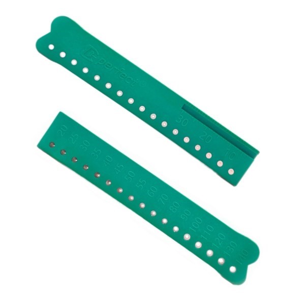 Эндолинейка калибровочная для гуттаперчи и серебряных штифтов, материал-пластик. 17 измерений. Калибровочный шаг: диаметр +/-0,02 мм, длина +/- 0,25 мм.